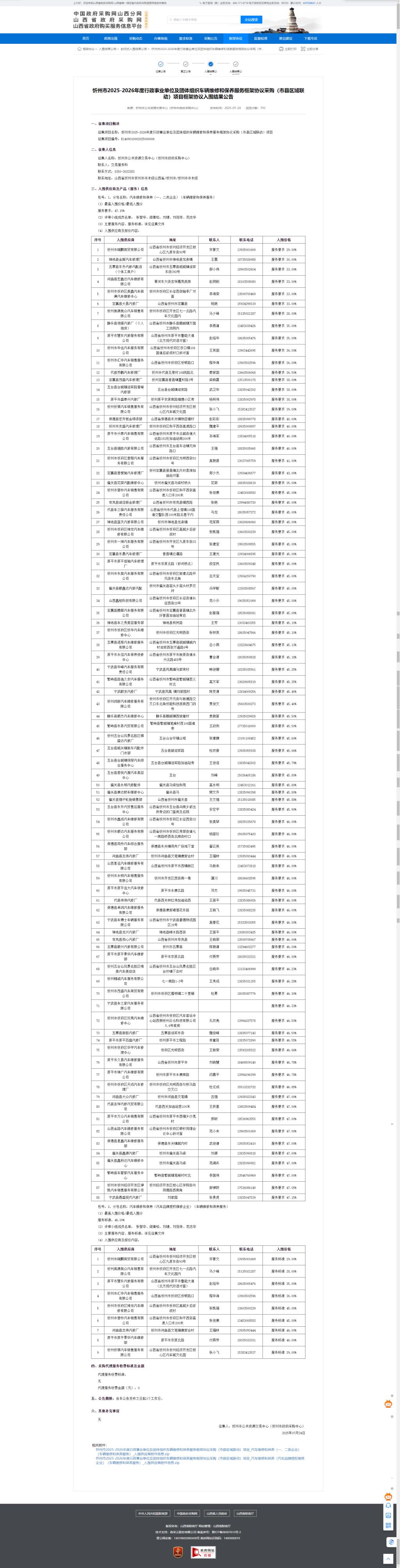 忻州市2025-2026年度行政事业单位及团体组织车辆维修和保养服务框架协议采购(市县区域联动)项目框架协议入围结果公告